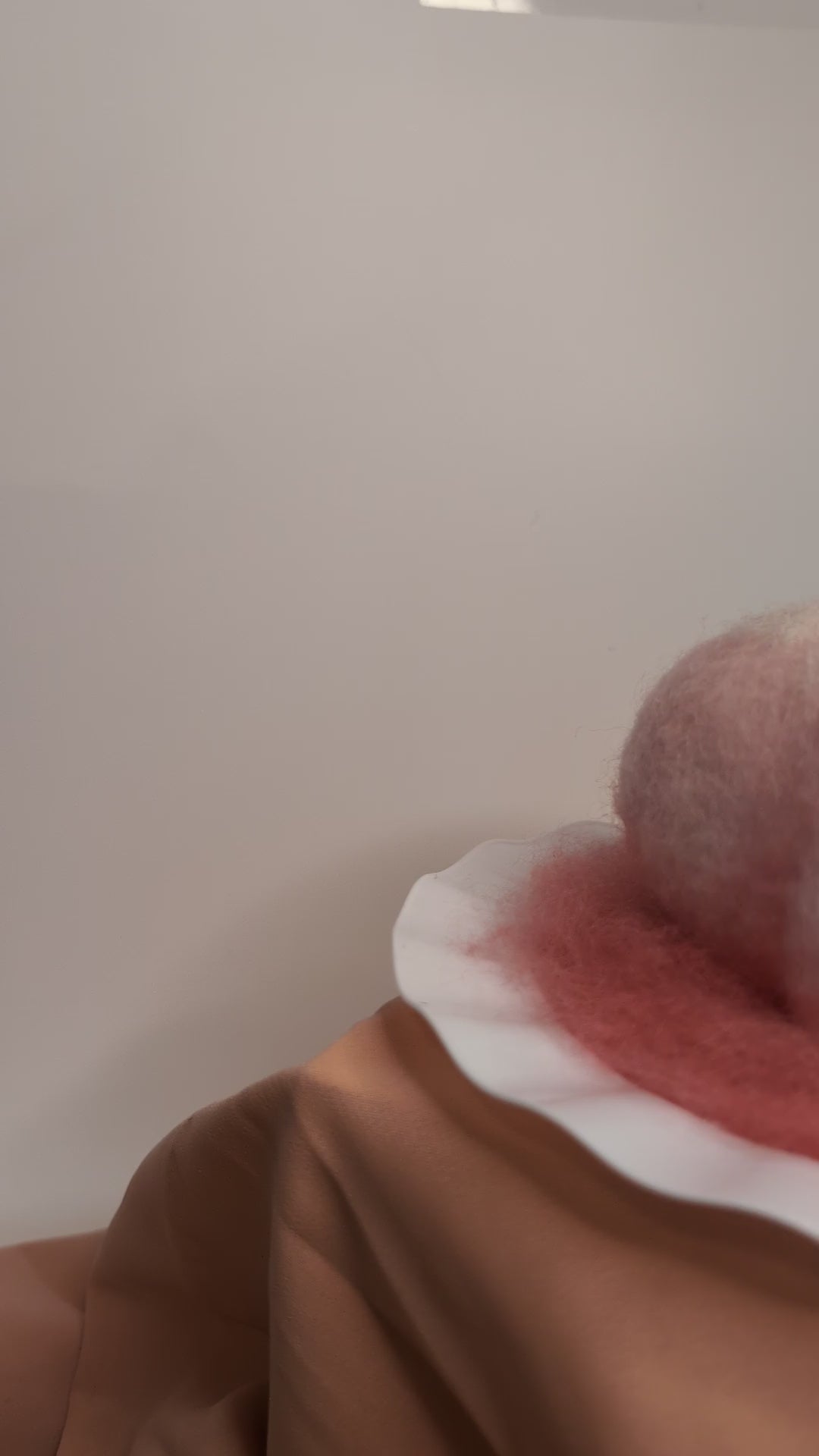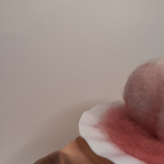 Inspired by TikTok, this needle felted cat is an homage to the delightful pudding cats featured in recent videos. This one is strawberry flavor and comes with a plate to rest its chubby little body on!